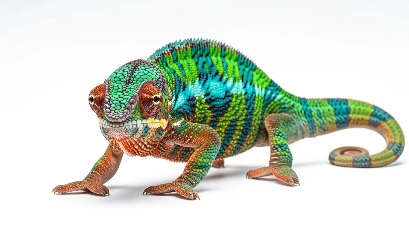 Panther chameleons are famous for their intense colors and regional locale variations, including Ambanja, Nosy Be, Ambilobe, Sambava, and Antimena. Adult males develop vibrant combinations of blue, red, green, yellow, and orange, while females display softer but equally elegant tones. Their ability to change color adds to their appeal and visual excitement.